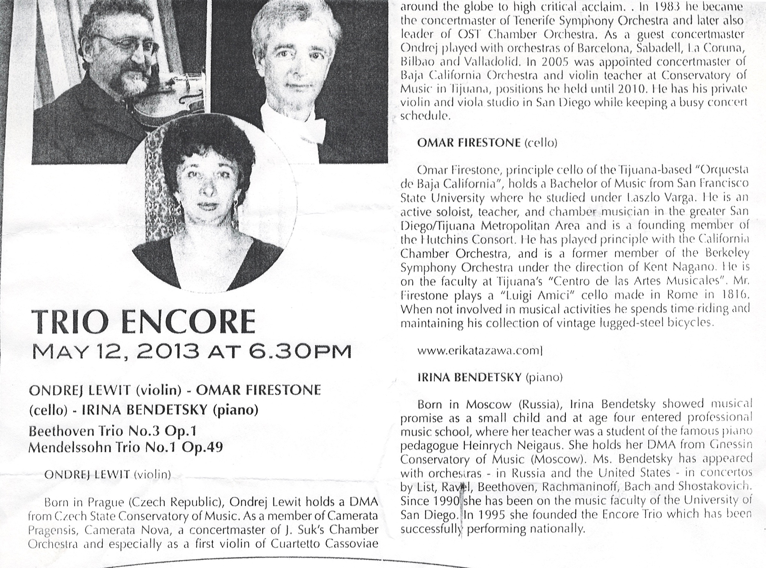Duet Yrion and Trio perform Dvorak, Smetana, and Drdla at Czech Music Celebration